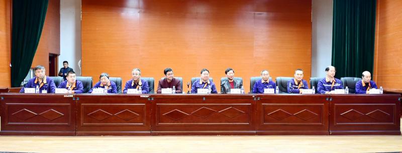 黄石市总工会党组成员、副主席黄毅(右五),黄石市职工技术协会副会长鲁伟明(左五),公司领导班子成员出席大会。