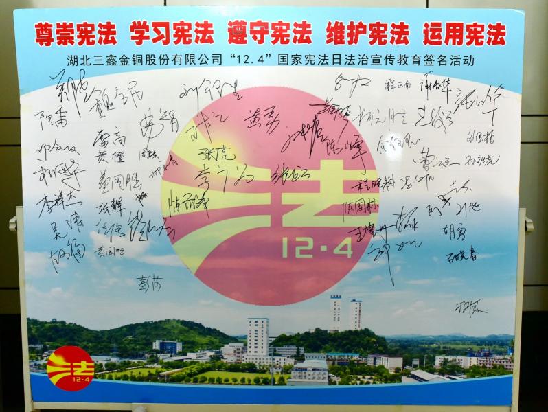 12月4日,是第五个国家宪法日,公司为深入贯彻落实党的十九大、十九届二中、三中全会精神,认真贯彻落实中央全面依法治国委员会第一次会议精神,进一步凝聚干部群众尊崇宪法、学习宪法、遵守宪法、维护宪法、运用宪法的力量和共识,增强宪法意识和法治观念,开展了宪法日主题签名活动,组织公司领导班子成员以及中层管理人员观看了《宪法的力量》和《法治中国》宣传片等一系列法治宣教活动。