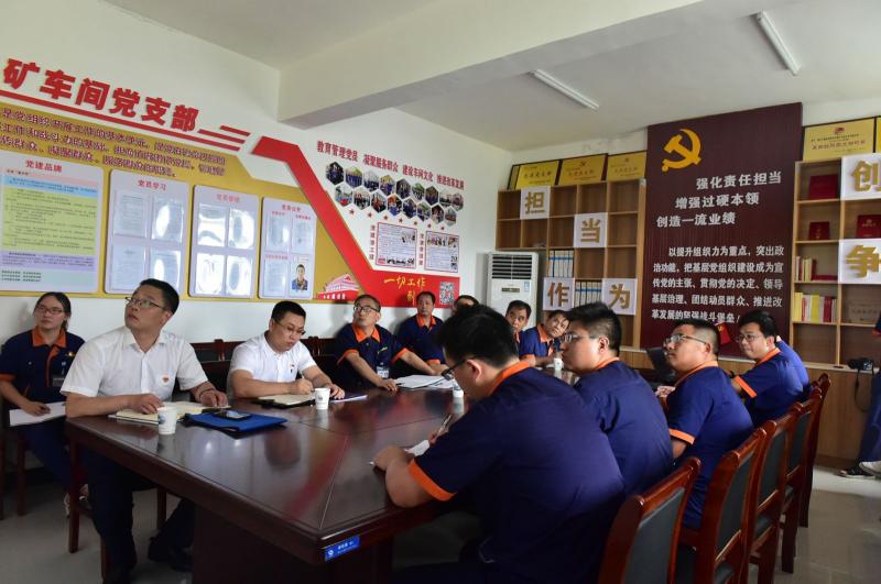 根据公司党委“不忘初心、牢记使命”主题教育工作安排,6月28日下午,中国黄金集团巡回指导组领导、bv1946伟德支部挂点领导、总经理王友元一行深入采矿车间党支部,按照“四个围绕”要求进行专题调研,广泛听取意见建议,听取工作汇报。车间班子成员、支委、技术人员、党员和员工代表、公司党务部门主要负责人共30余人参加了此次调研座谈会。