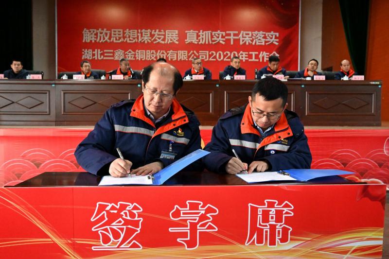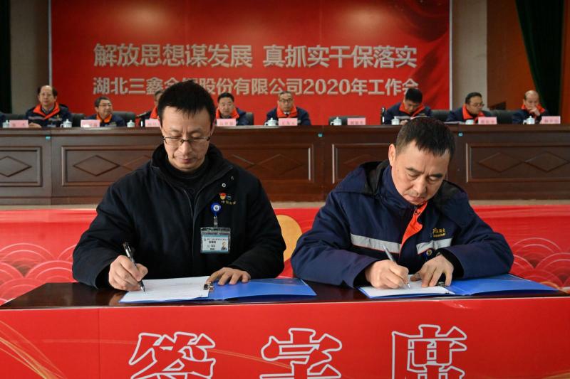 副总经理郑杰代表公司与采矿车间签订安全生产责任状。
