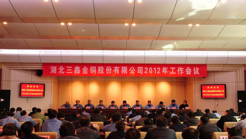 公司总经理杨培炎在会上作题为“夯实基础、强化素质、提升形象,为全面完成年度各项目标而努力奋斗”工作报告。报告全面总结2011年公司生产经营、资源占有、企业管理、数字化矿山建议、安全六大系统建议、绿化美化工程等各项工作所取得的成绩。报告指出,在公司全体干部员工的共同努力下,全面完成了董事会下达的各项工作任务,为完成公司的“十二五”规划目标奠定了坚实的基础。2011年,公司主要生产经营指标全面完成,金铜产量、销售收入及利润创历史新高。全年完成选矿处理量92.26万吨,生产矿山金1432.07公斤,完成年度计划的100.1%;生产矿山铜12769.26吨,完成年度计划的103.81%;全年金铜回收率分别为82.91%、93.41%,分别比上年同期提高1.04、0.54个百分点。全年累计完成采掘总量103.25万吨,掘进14330米,充填量273621立方米。全年累计实现销售收入11.79亿元,增加3.01万元,增长34.28%,实现利润7.72亿元,比去年同期5.02亿元,增加2.7亿元,增长53.78%;吨矿综合成本397.91元。在资源占有、探矿增储方面取得新成果。其中,公司控股的黄石金达公司正式与省国土资源厅签署协议,参与许家嘴区块风险探矿;鸡冠嘴深部探矿效果显著,新增储量较大;生产中段储量升级及探矿增储全年新增122B地质储量18.133万吨,金金属量182.24公斤,铜金属量1567.11吨。公司安全环保工作态势平稳良好,环保型绿色矿山已初具雏形。另外,公司基本完成了尾矿压滤工程,数字化矿山建设得到持续推进,深部开拓工程建设启动等。