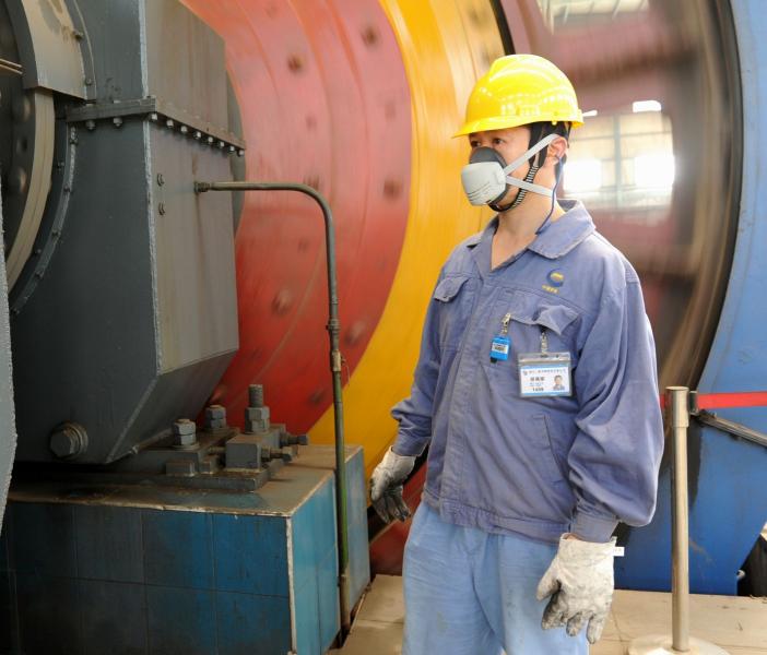 球磨工是三班倒工作岗位。胡英俊作为一名普通的球磨工,在日常岗位操作中,时时刻刻关注着设备的运行状况。他的“一听二摸三观察”,是他在自己的岗位上摸索总结出来的经验。“听”,就是仔细听球磨机的齿轮是否有异常声响,相关的各种辅助设备是否有杂声;“摸”,就是用手摸矿浆的浓度和细度,对于下一步的浮选生产的技术指标稳定能起到重要作用;“观察”,就是时刻观察球磨机的电机电流值大小是否正常,球磨机的重点部位如轴瓦的运行情况是否良好,球磨机是否有漏浆现象,仔细查看球磨机各部位的润滑情况,对球磨机的冷却系统经常查看。由于他平时养成了良好的工作习惯,一旦发现设备在运行中出现异常状况(电机电流值偏大时),及时向班长或工段长汇报,协助有关人员采取措施(如适当减少供矿量等),及时解决问题和消除隐患。今年夏天,胡英俊发现一台砂泵电机温度异常之后,立即向工段汇报。通过电工排查之后,避免了设备事故的进一步扩大。作为一名球磨工,胡英俊合理添加钢球,保持合理的给矿量和供水量,认真估算查看磨矿浓度和返砂量,使浮选矿浆生产指标达到合理的浓细度。
