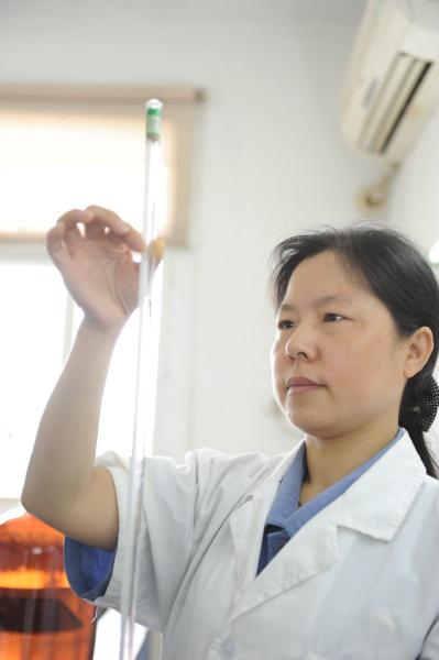 在样品滴定过程中,刘彩霞严格要求自己,别人用一滴标准液的技术要求滴定,他用半滴标准液的要求去滴定,甚至将半滴分为大半滴、小半滴的技术要求来完成,做到精益求精。