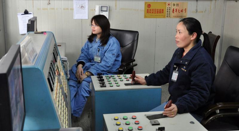 提升车间卷扬工精心操作设备。