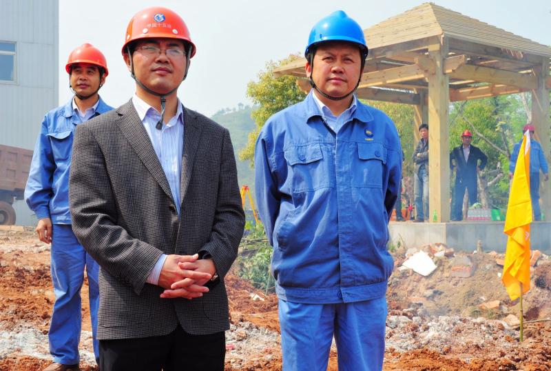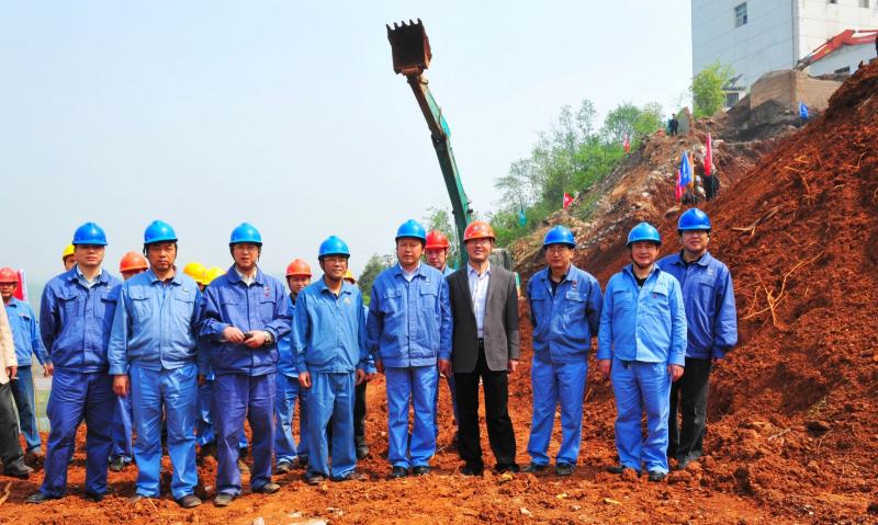 是日上午10时18分,位于公司选矿车间破碎工段旁,3000吨/日采选改扩建工程新主井工业场地现场彩旗招展,万炮齐鸣,挖机舞臂,自卸车往返运土石方,3000吨改扩建工程新主井工业场地破土开工。公司董事长梁中扬、总经理杨培炎、公司领导王友元、刘银生、毛怀春、周志岩、郑杰、沈子杰、相关部门负责人以及施工单位中国十五冶三公司参加了3000吨/日改扩建工程新主井工业场地土石方工程开工典礼。