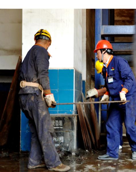 “支部组织义务劳动是‘两学一做’的内容之一。党员要积极参加义务劳动,为生产区域创造良好的工作环境。通过义务劳动促进文明生产,体现了党员的先锋模范作用。”提升车间主任、党支部书记刘月中说。(陈栋斌)