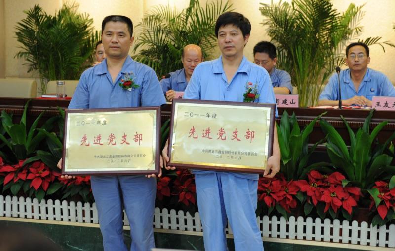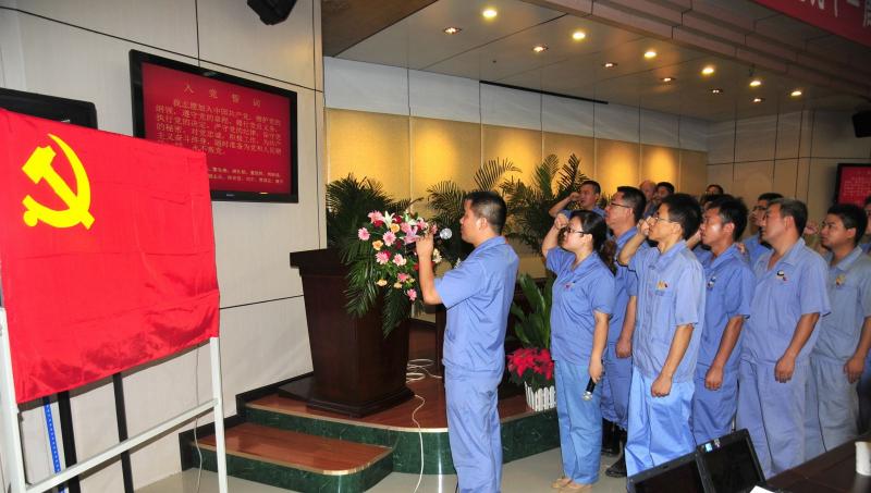 会议在庄严肃穆的国歌声中开始。公司常务副总经理王友元代表公司党委对公司2012年上半年生产经营情况做了全面介绍,并宣读了表彰决定。会议对提升车间党支部、机关一支部以及宋德刚等10名优秀党员进行了表彰,同时特别嘉奖见义勇为勇士汤文同志。随后,公司黎先燕等10名发展对象宣誓加入中国共产党,纳新代表胡志兵、优秀党员代表曹云志分别进行了发言。