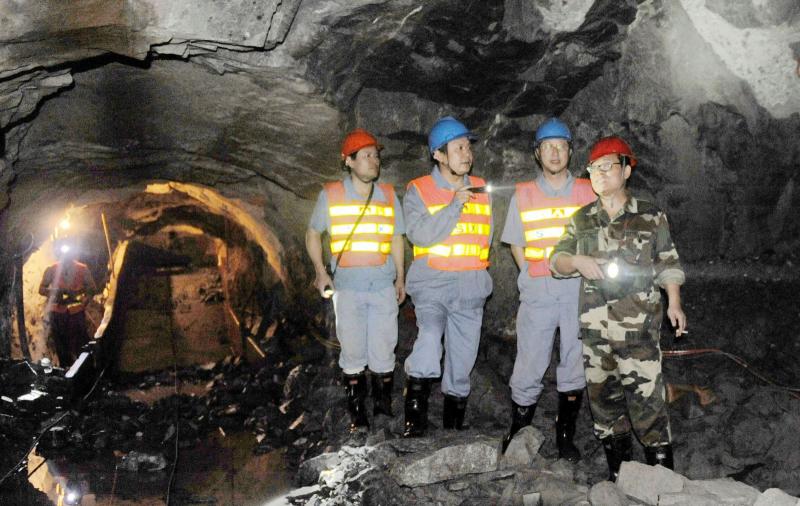 溜破系统工程、新主井工程、新风井工程、-570米中段开拓、副井延伸措施工程以及措施井安装为6月份重点工程。作为公司“希望工程、后劲工程”,公司董事长梁中扬、总经理杨培炎、常务副总经理王友元、副总经理郑杰多次深入深部开拓工程,检查井下安全、生产进度、工程质量等工作。