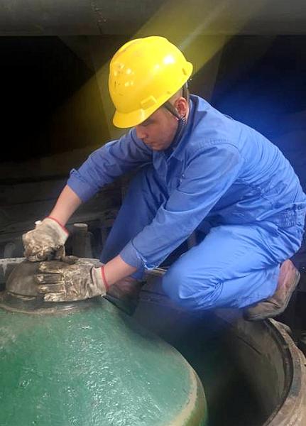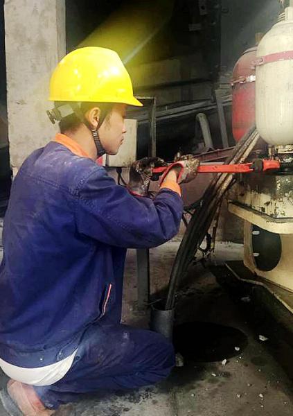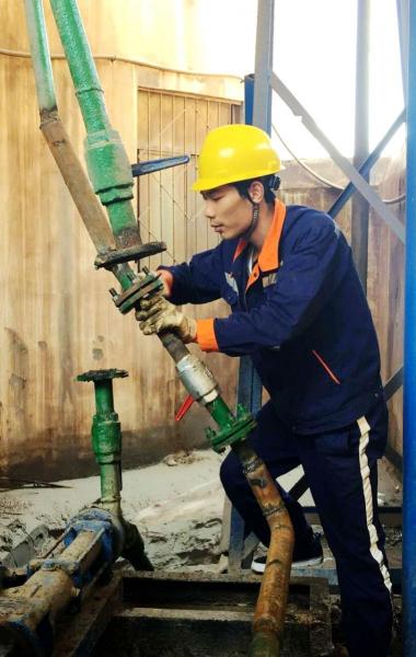 充填工段维修班负责充填工段的各类维护维修工作,同时也肩负着-17线风井的日常维修和充填管道更换、架设等工作。他是维修班最年轻的下井作业钳工,在工作中他冲在最前面,深得班组长和工段长的信赖。