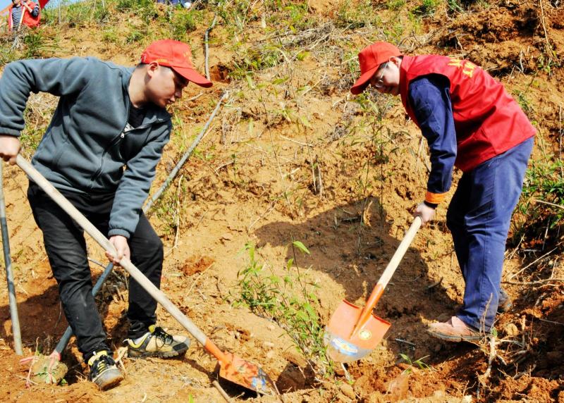 bv1946伟德20余名志愿者在植树点留下春天里最靓丽的一抹红。