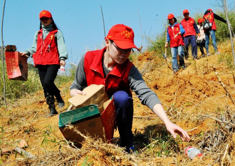 3月12日,bv1946伟德20余名青年志愿者参加大冶团市委组织的“1+100线下青年活动“赴刘仁八镇植树。植树结束,bv1946伟德青年志愿者柯年新等人将大家废弃的垃圾随手捡回。(文/图 张芳琼 卢元华)