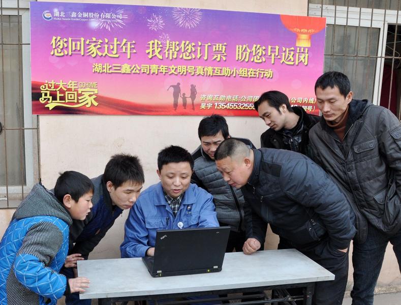元月26日,公司青年志愿者来到民工公寓前,为金诚信、温二井、隆盛驻bv1946伟德项目部的外来施工人员提供报务。“驻bv1946伟德项目部的外来施工人员来自全国各地,我们设立了咨询台,公布了24小时联系电话,教他们如何利用电话、网络订票,或是现场为他们网上订购往返车票,为他们提供全天候服务。”团委负责人黎先燕介绍。