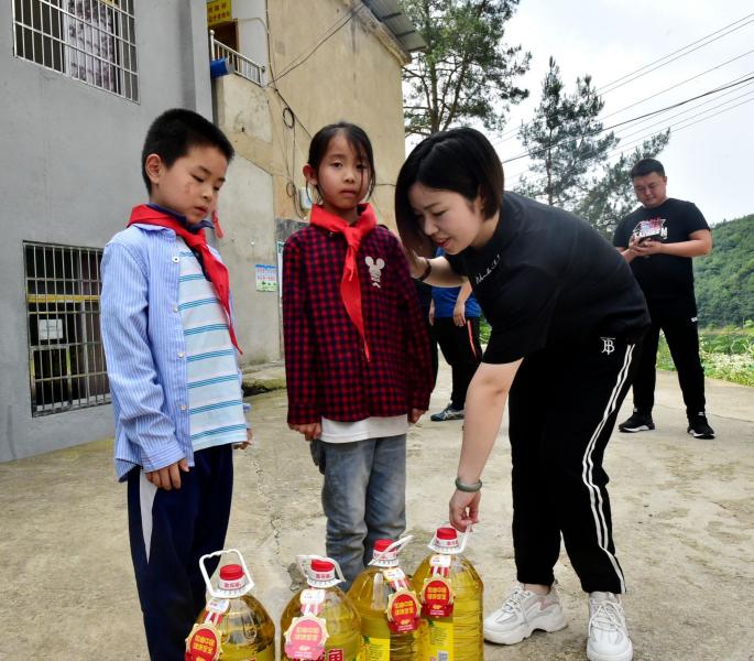 青年文明号还为留校儿童带去了生活物资。