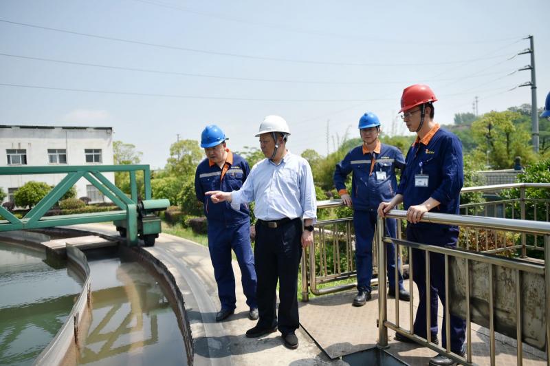 集团公司党委副书记、董事、总经理刘冰(左二)在公司水处理厂调研。