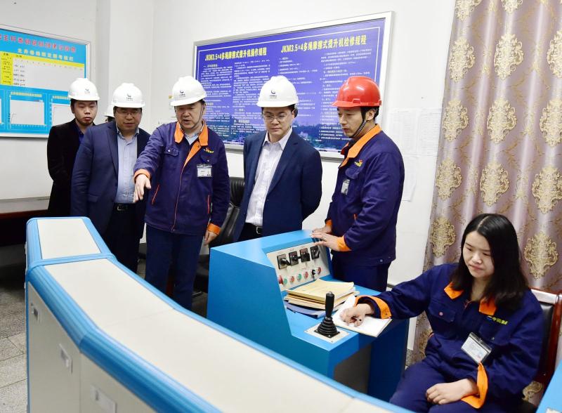 调研组一行在公司董事长高世贤、党委书记杨培炎、总经理王友元陪同下,参观了公司新主井。提升车间工作人员向祝念峰一行介绍了新主井井深、设备性能、提升能力、生产运行等情况。在调度指挥中心,工作人员介绍了公司3DMine真三维管控系统功能和自动化、信息化运行有关情况,并围绕公司的资源、通风、排水、运输等多个方面,通过三维可视化建模中的应用进行展示。祝念峰一行对公司数字化、自动化、信息化的生产运作和管理方式表示肯定。