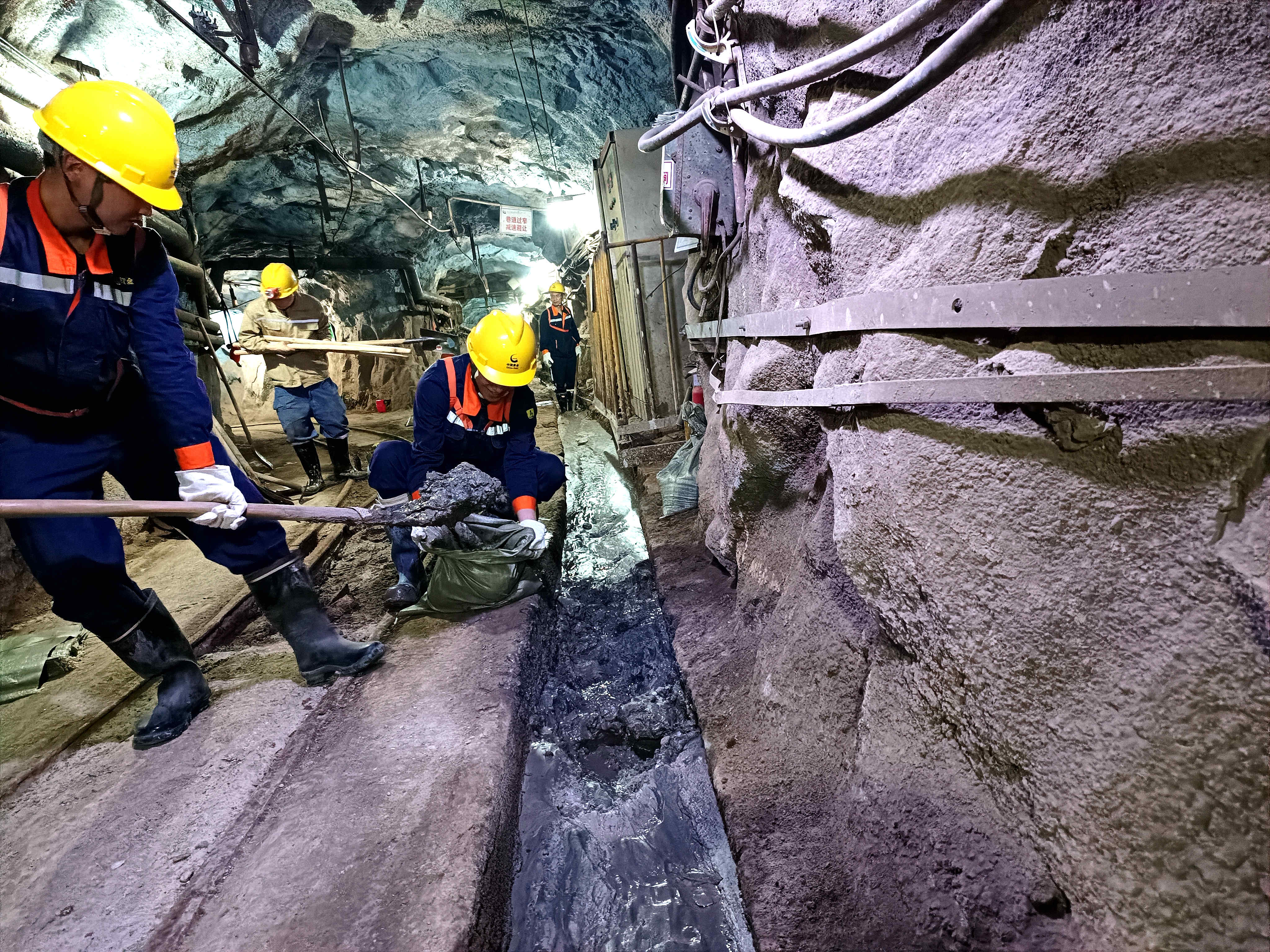 活动中,大家职责分明,齐心协力,现场一派忙碌景象。经过大家近两个小时的努力,共计清理水沟淤泥100米,同时完成对马头门附近场地的冲洗,亮化清洁了井下现场环境。
