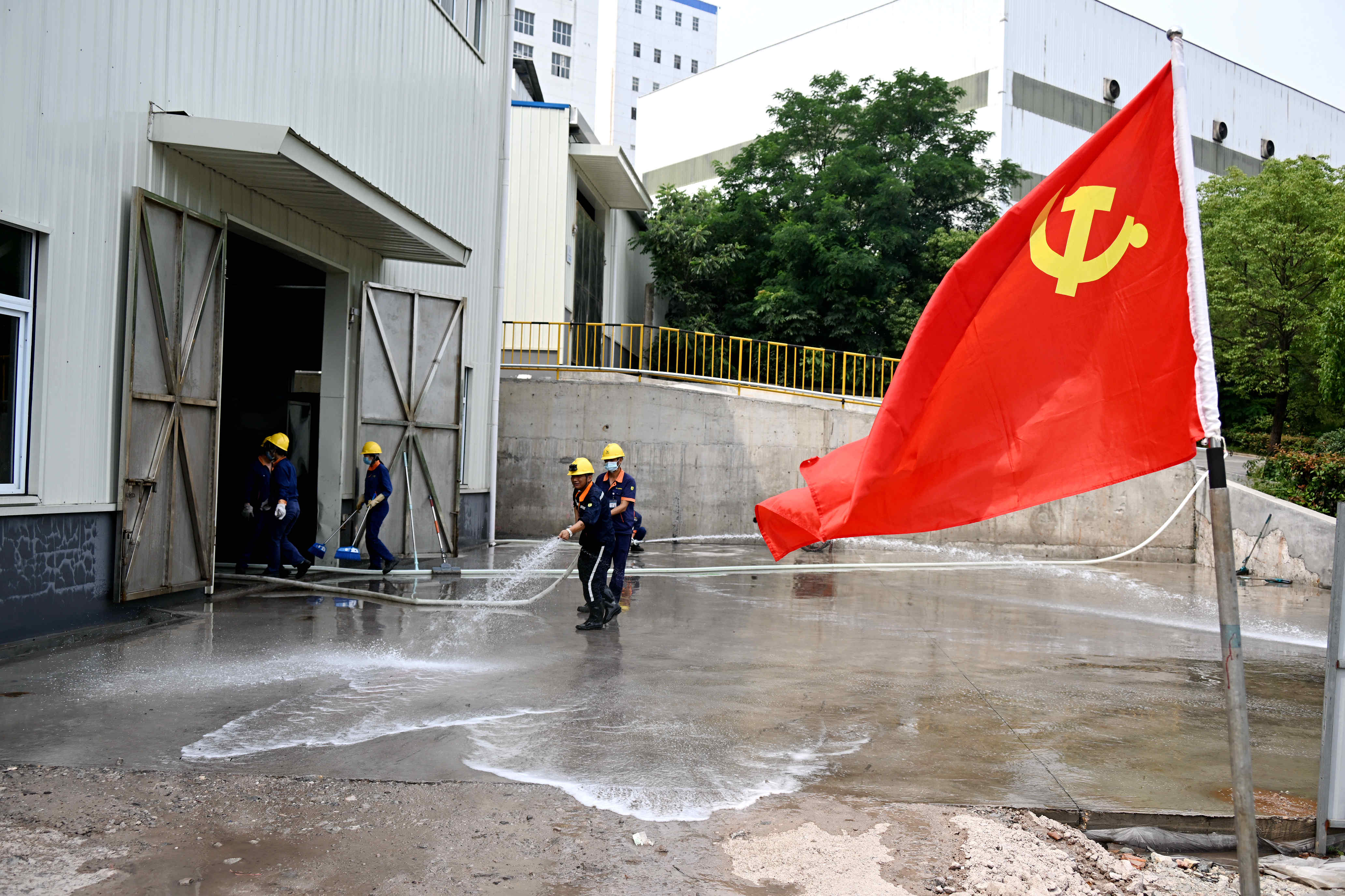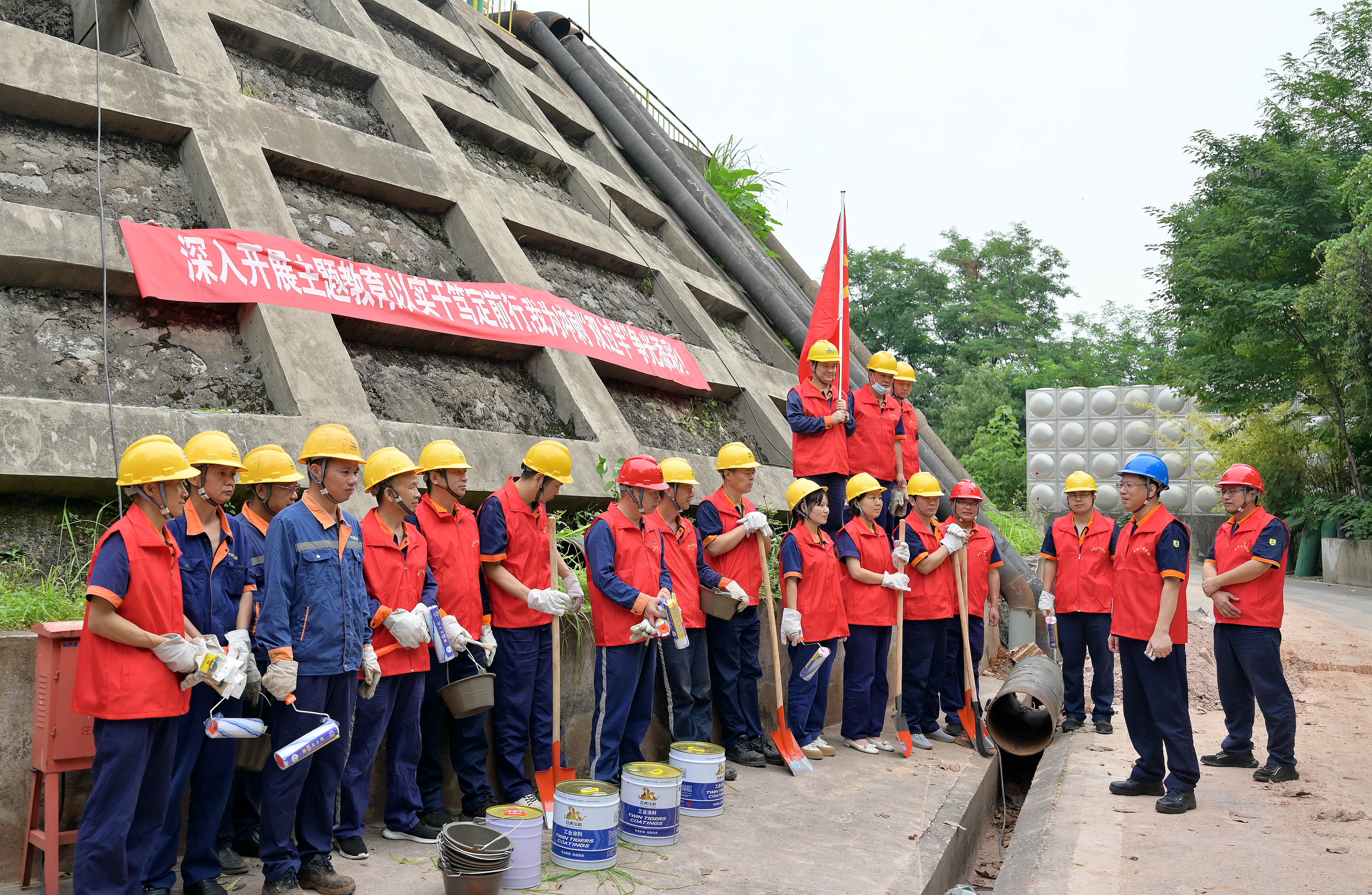 主题党日期间,选矿车间、运输车间、武装保卫部、机关三、机关四、机关五党支部开展现场卫生大清洗突击行动。活动中,有刚下夜班的党员、入党积极分子主动参加义务劳动。大家配合默契,分工明确,有的党员用铁锹铲,有的党员用镰刀割,有的党员用水枪冲,有的党员用钢丝刷钢丝球擦,有的党员用板车搬运垃圾杂物……尽管天气炎热,但是大家干得热火朝天。经过大家齐心协力奋战,公司现场环境干净整洁、井然有序,面貌焕然一新。