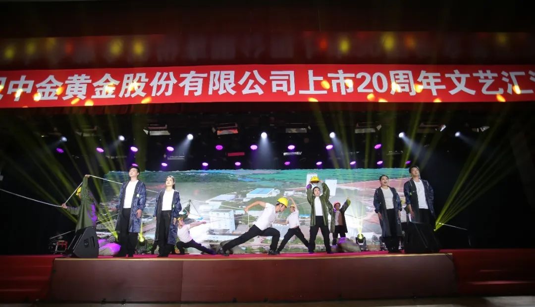 中金黄金庆祝上市20周年文艺汇演邀请了集团公司领导班子和股份公司老领导出席活动,集团公司总助级干部、总部各部室负责同志、部分在京单位及参演企业领导班子成员,以及中金黄金全体干部职工近260人参加活动。来自股份公司旗下的多家企业以歌舞、三句半等节目形式,同台歌颂伟大的祖国伟大的党,深情讲述在集团公司的坚强领导下和中金黄金的带领下企业繁荣发展、职工幸福生活的精彩故事和美丽画面。公司选送的情景剧《掘金者》受到集团、股份公司一致好评。