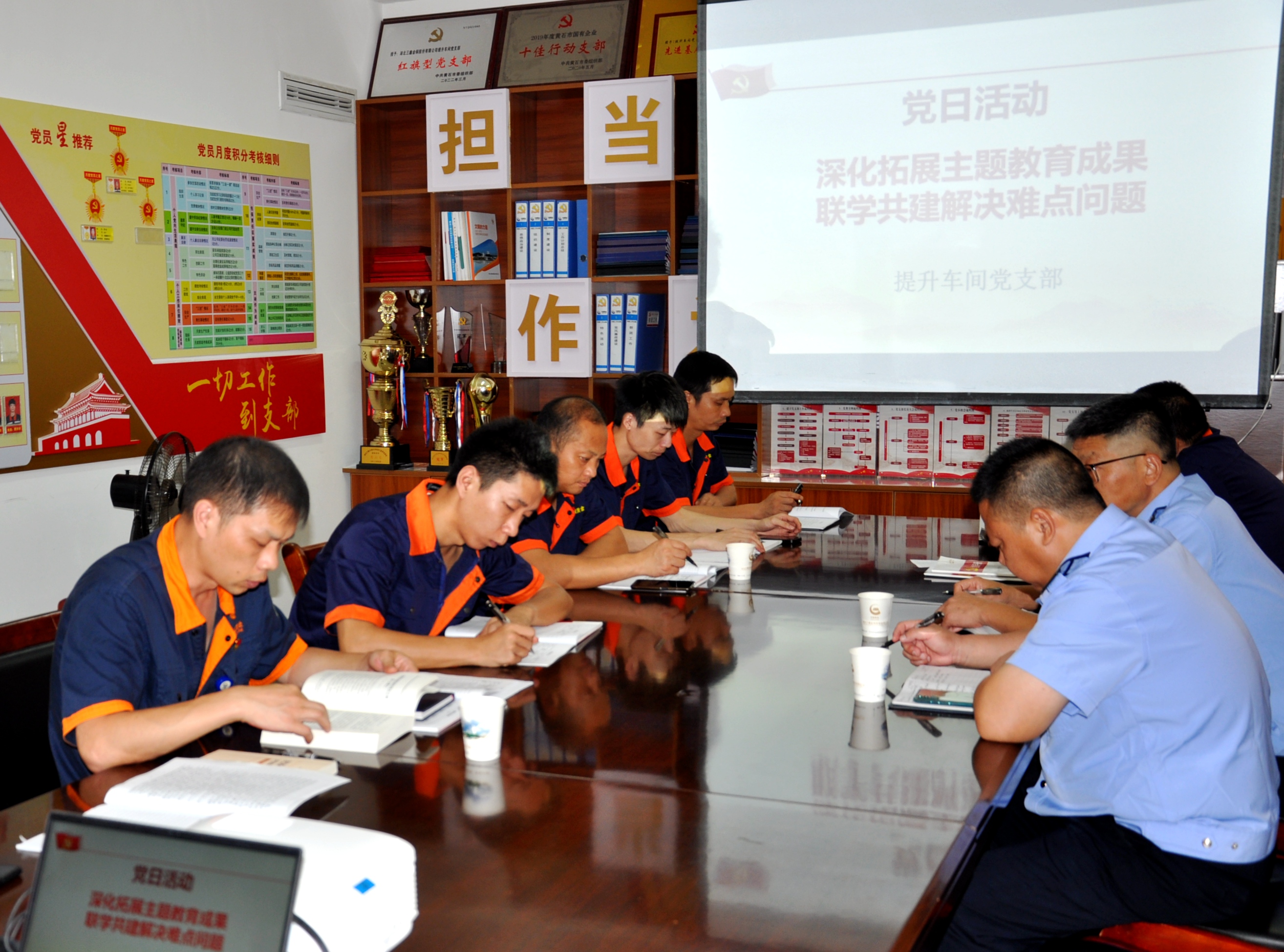 “要真学深学,要共享共创,切实发挥支部战斗堡垒和党员先锋模范作用。”提升车间党支部挂点领导王向前在主题党日活动上,就两支部联学共建工作强调。