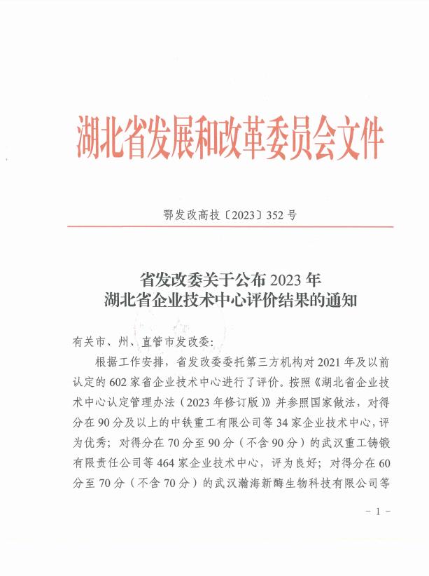 近日,湖北省发展和改革委员会发布了“省发改委关于公布2023年湖北省企业技术中心评价结果的通知”,bv1946伟德技术中心通过考评被评价为“良好”。