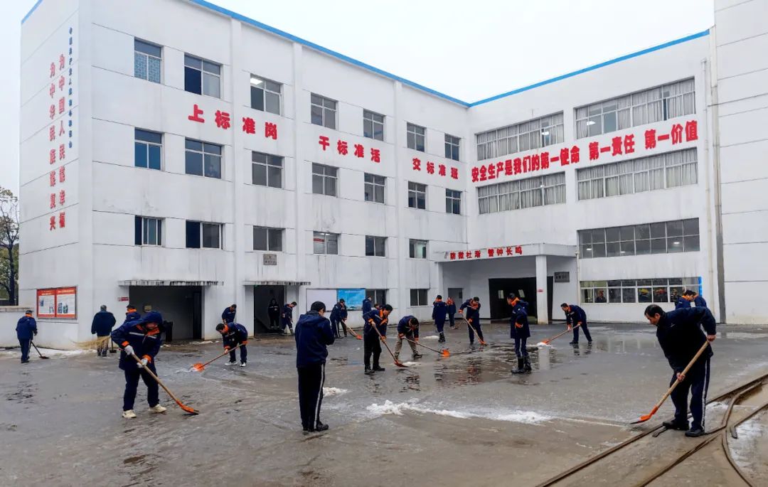 各车间部门迅速调配人员、工具,合理规划除雪作业,采取人工铲雪方式预防道路结冰、大面积清除路面积雪。厂区过道、办公楼、后勤服务中心等职工通行路线提前铺上干麻袋,防止行路滑跌。除雪现场一片热火朝天的景象,虽然天气寒冷,但丝毫未影响大家的除雪进度,经历了2个多小时的集中“战斗”,主要道路的积雪暂时被清除,职工行路安全得到了保障。