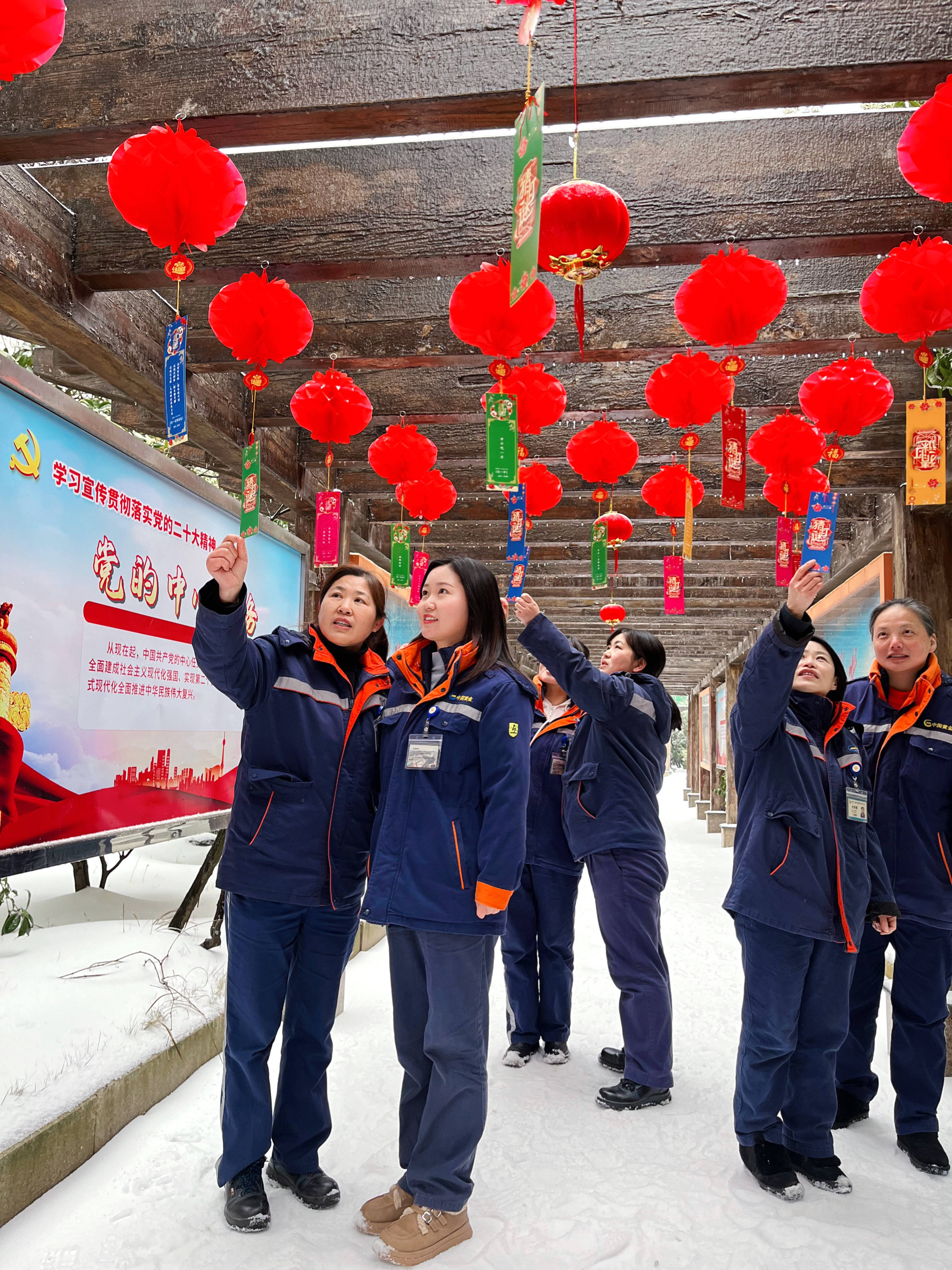 清晨,公司文化长廊一片银装素裹,工作人员一大早就布置好了现场,悬挂大红灯笼,贴上彩色谜面,准备开展猜灯谜活动。“有人画我怕点睛、说时点了会飞翔”、“前景喜人,昂首前进”......生动有趣的谜面跃然纸上,迎风飘扬。热情的工友们提前半小时结伴而来,各自挑选心仪谜面,现场气氛火热,一片欢声笑语。