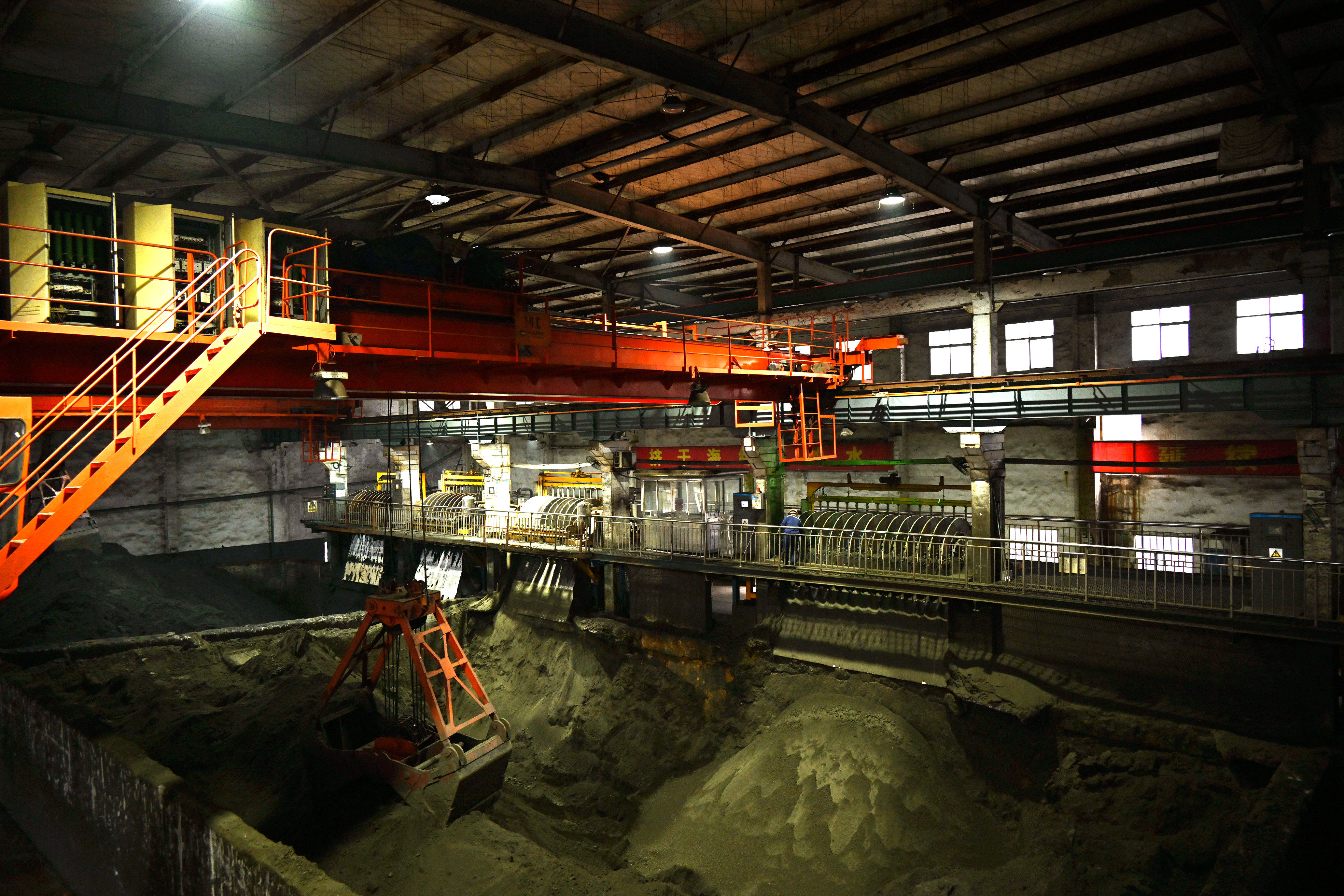 公司选矿车间脱水工段行车工在忙着装运硫铁精矿。