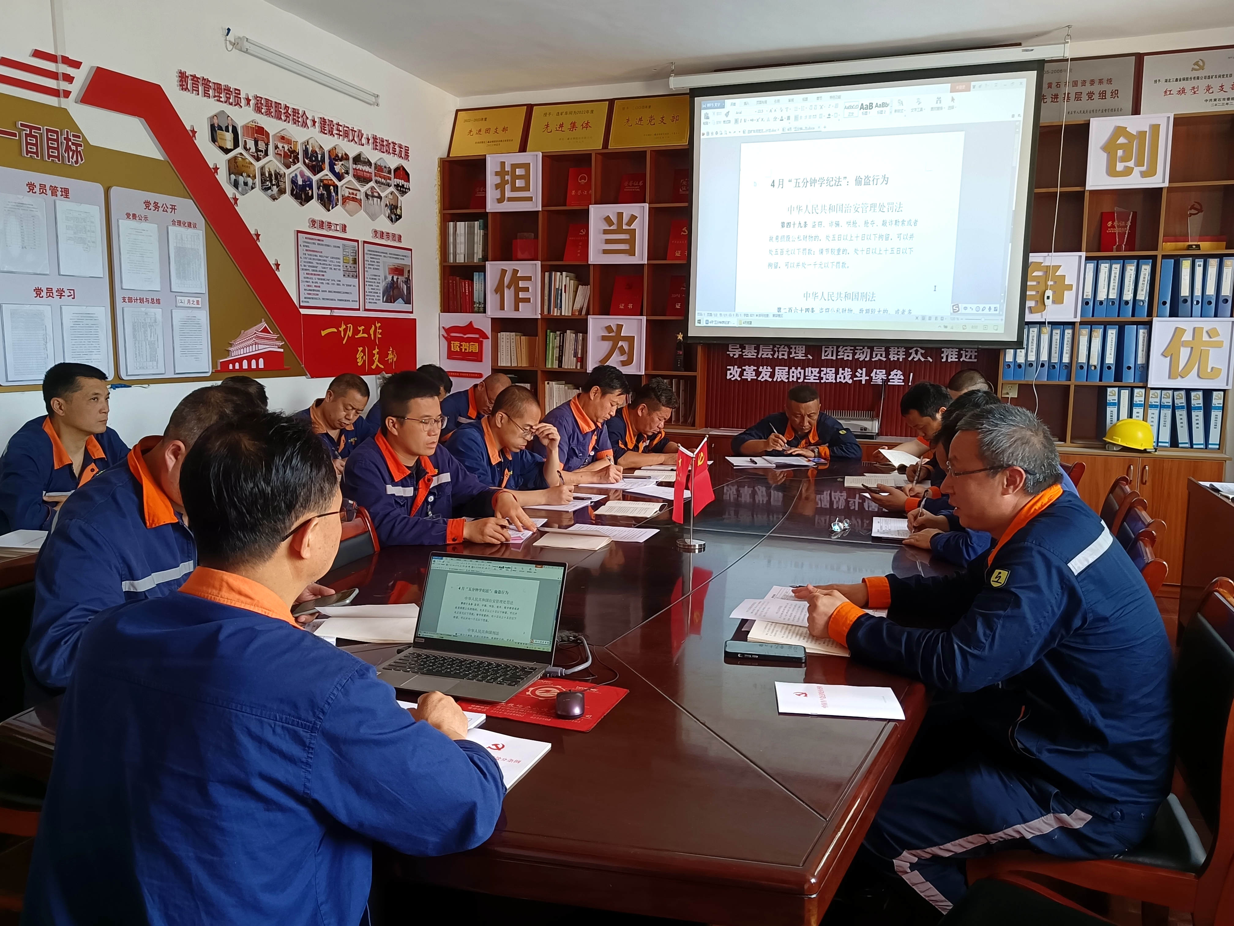 联学共建活动前,选矿车间党支部组织学习了习近平总书记关于党纪学习教育的重要讲话和重要指示精神、《中国共产党纪律处分条例》,围绕酒驾、醉驾、黄赌毒、偷盗等主题,认真学习《治安管理处罚法》《刑法》《公司职工违规违纪行为处分规定》等,并结合近年来公司违规违纪案例,深刻认识违规违纪的各种危害,达到以案明纪、正风肃纪的效果。