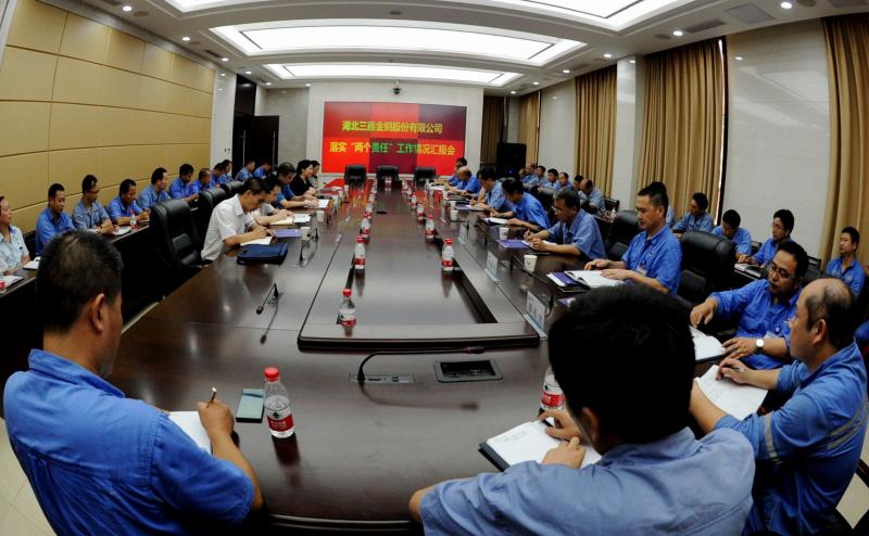 8月17日下午,黄石市国资委党委书记、主任张天华,党委委员、副主任程贵芬一行5人来bv1946伟德调研督导“两个责任”落实情况。bv1946伟德公司领导班子全体成员,各个车间部门负责人、支部书记、党员代表近50人参加了座谈会。