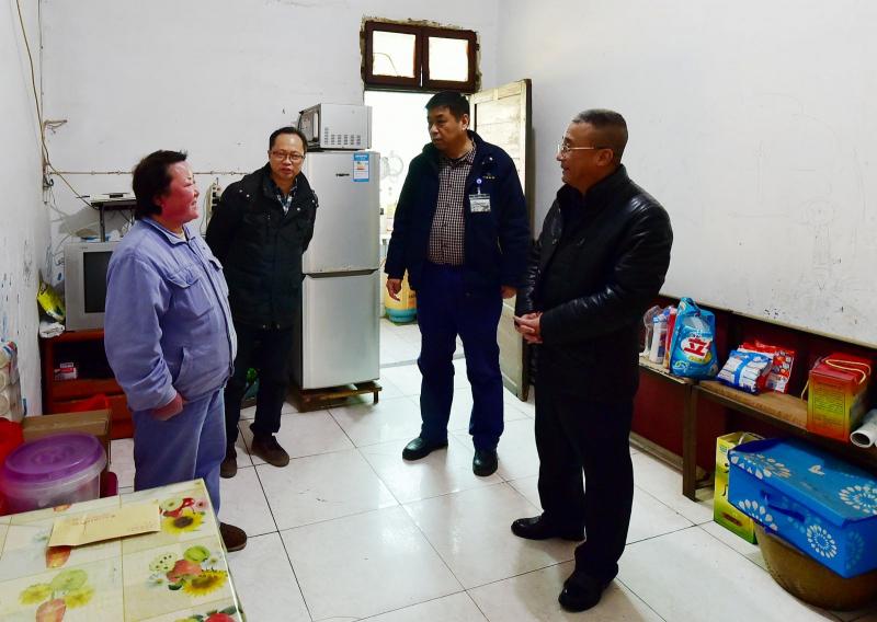 图为公司党委书记杨培炎(右一),副总经理、工会主席毛怀春(右二)慰问公司困难员工李桂香(左一)。