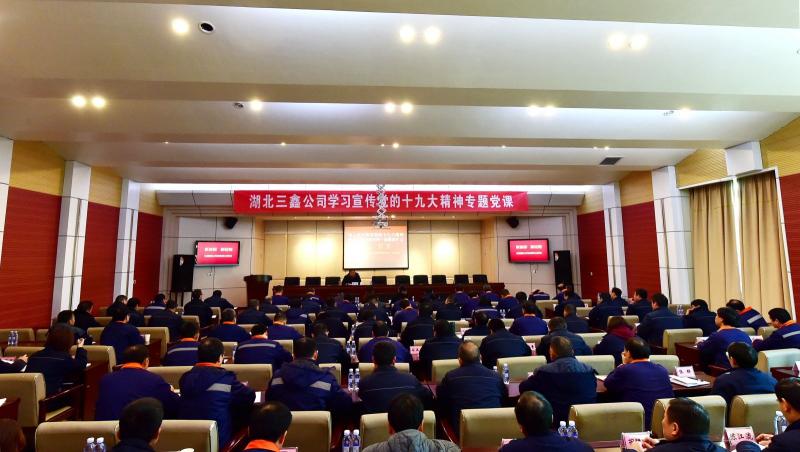 图为刘冰为公司助理级以上管理人员、党员代表,湖北鸡笼山公司班子成员上专题党课。