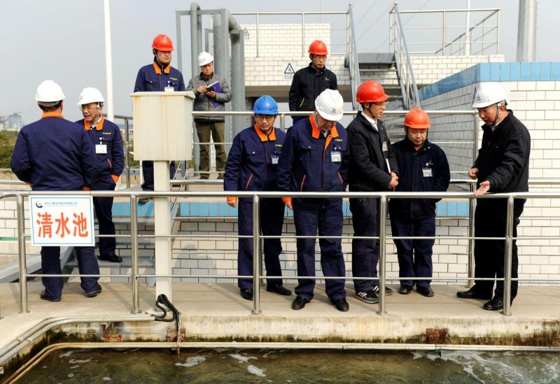 图为魏山峰副总经理(右一)在公司回水处理厂调研。