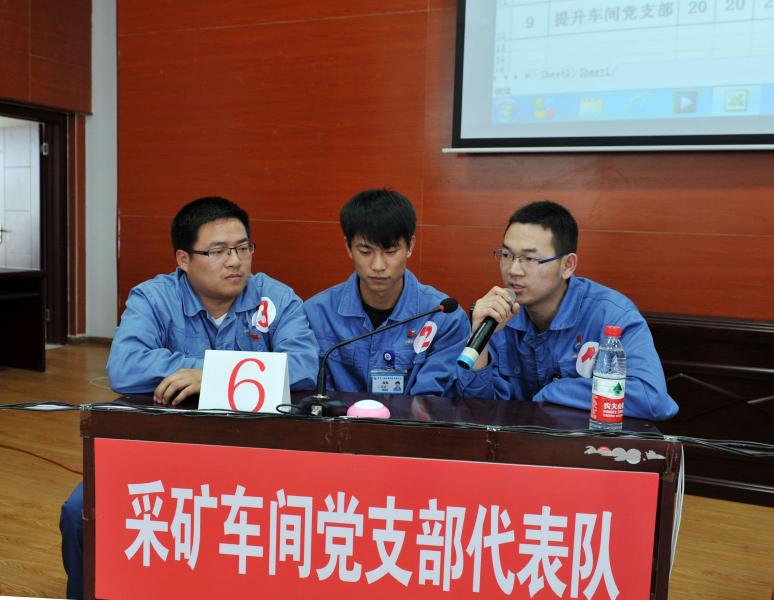 经过激烈的角逐,提升车间党支部代表队勇夺第一,机关一支部、采矿车间党支部代表队获得第二名,充填车间、选矿车间、运输车间党支部代表队获得第三名,机关二支部、武保部、动力车间党支部代表队获得优秀奖。