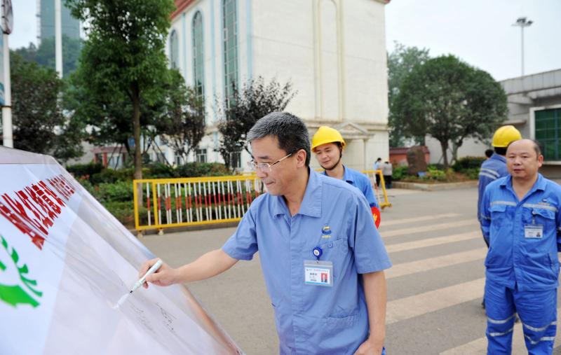 在活动现场,悬挂了“强化红线意识,推动安全发展”、“我的安全我负责,他的安全我有责,岗位安全我尽责”等条幅,公司主干道及两旁摆满了安全法律法规展板。健康安全环保部工作人员、戴着“青安岗”红色袖章的青安岗岗长认真地为公司员工和外委施工单位作业人员讲解安全知识。公司总经理杨培炎,常务副总经理王友元,总经理助理湛若中也来到活动现场,认真观看安全法律法规展板,并在印有“强化红线意识,推动安全发展”安全展板下面郑重签名。