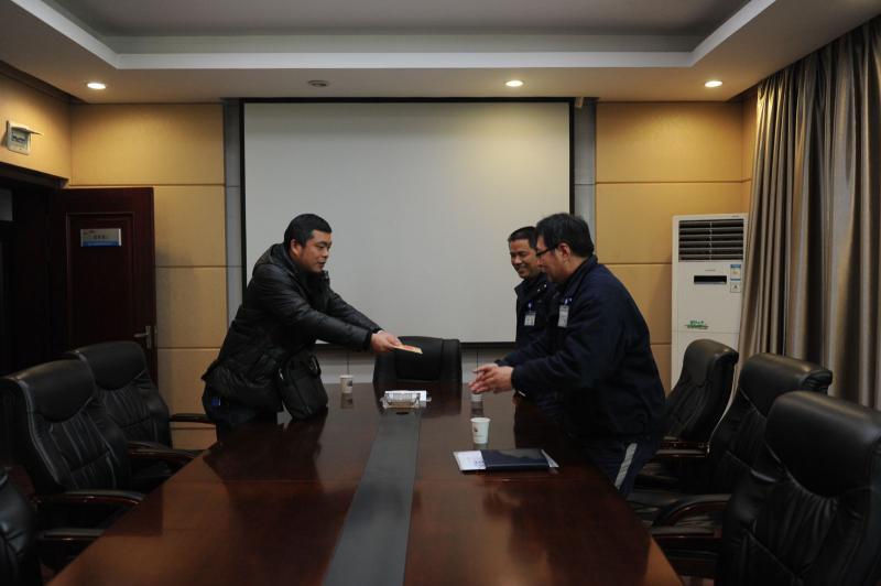 1月23日,大冶市委组织部派人(图2 左一)来公司,对技术人才朱江同志进行慰问,并将慰问金送到了他手上。