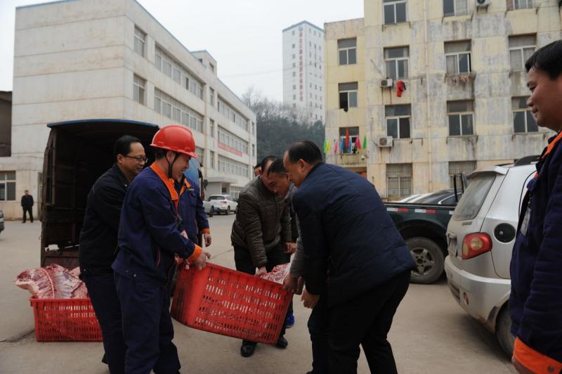1月25日,公司副总工程师帅金山(图4 前左一)带领调度室、后勤服务中心负责人代表公司对金诚信公司等3家外委施工单位进行走访慰问,向他们致以新春的问候和祝福,并将慰问物资送到了他们手中。(黄国强 黎先燕 曹正方)