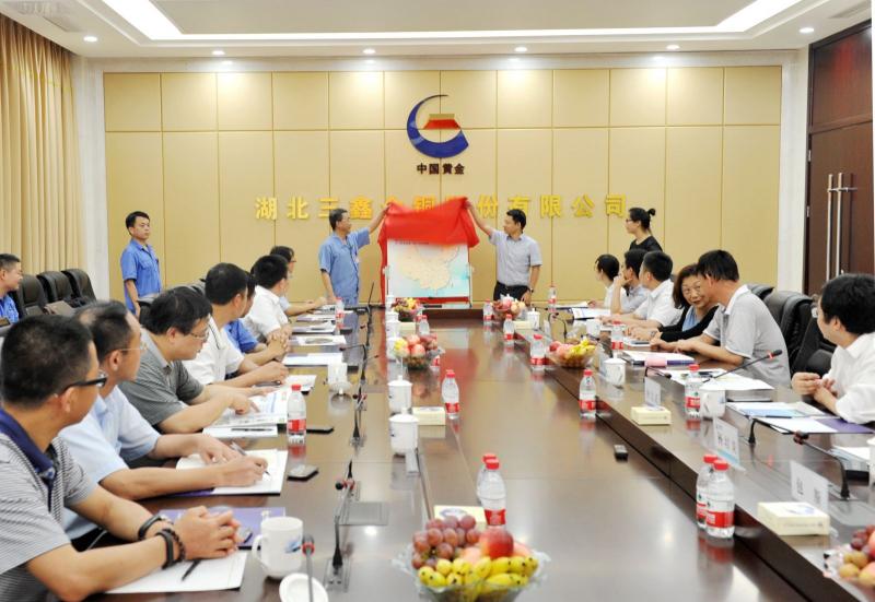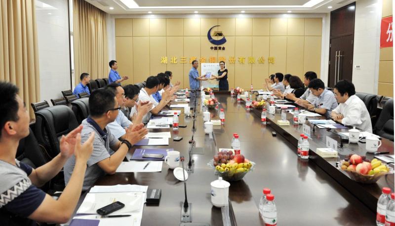 会上,中国黄金集团公司运营管理部李晓峰副经理、公司总经理杨培炎先后致欢迎辞。国资委研究局一处处长陈锋、公司总经理杨培炎共同为“分享责任中国行”中国黄金bv1946伟德站揭牌插旗。中国社科院企业社会责任研究中心常务副主任张蒽为杨培炎总经理赠送中心书籍。