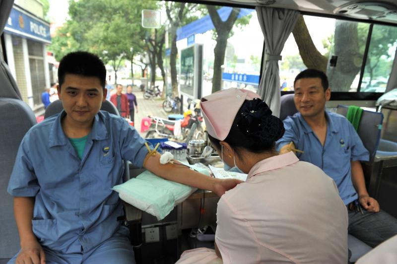 9月19日下午,公司得知黄石血库告急,立即组织员工开展义务献血活动。公司60余名员工踊跃报名,把大冶新建医院门口的两辆献血车围着水泄不通。填表、量血压、验血、献血……夫妻同携手,父子齐上阵,场面温馨而感人。