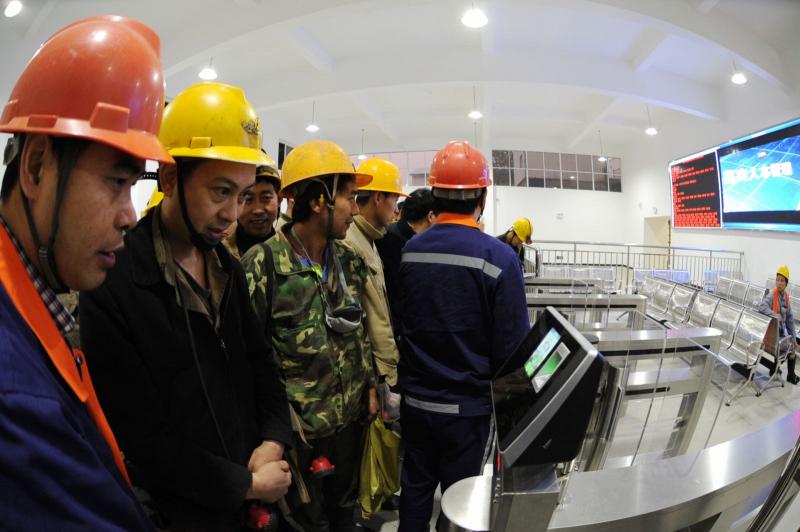 “请调整姿势,尚维兴。”11月19日早晨6时45分,公司副井新大厅热闹非凡。公司外委施工单位温州二井风钻工尚维兴在验证系统调试人员的指导下,对着验证系统刷脸,在中段选择器按了-470米中段去向确认之后,验证闸机自动打开,他进入了候罐厅。随后,金诚信公司、湖北重科外委施工单位下井人员排着队,依次验证刷脸进了候罐大厅,乘上了公司副井新大厅验证系统第一趟罐笼。