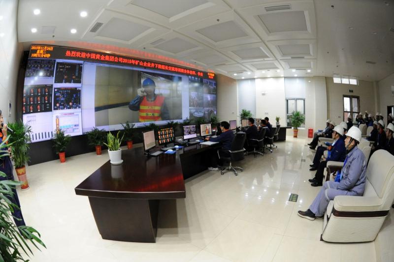 培训班学员在调度指挥中心了解矿山企业真三维管控系统项目建设成果。