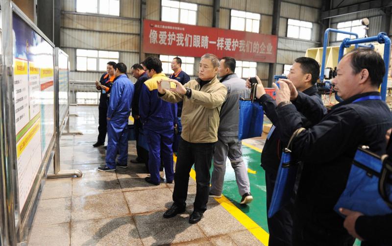 充填车间压滤工段看板引起培训班学员驻足观看,他们拿起手机纷纷拍照。