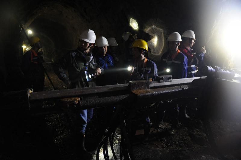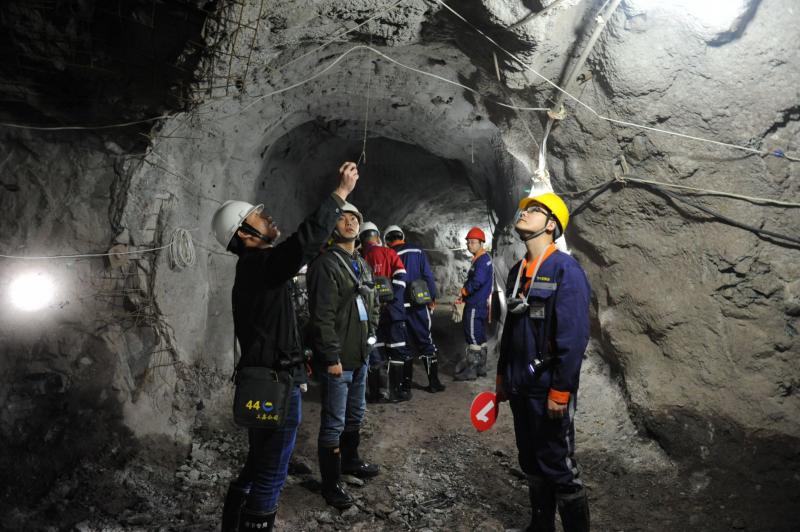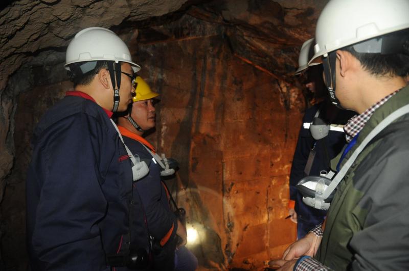 笔者跟随的是第一小组学员拍照,他们观摩的路线是-520米中段至-510米出矿面,再到-485米、-498米、-533米掘进作业面。