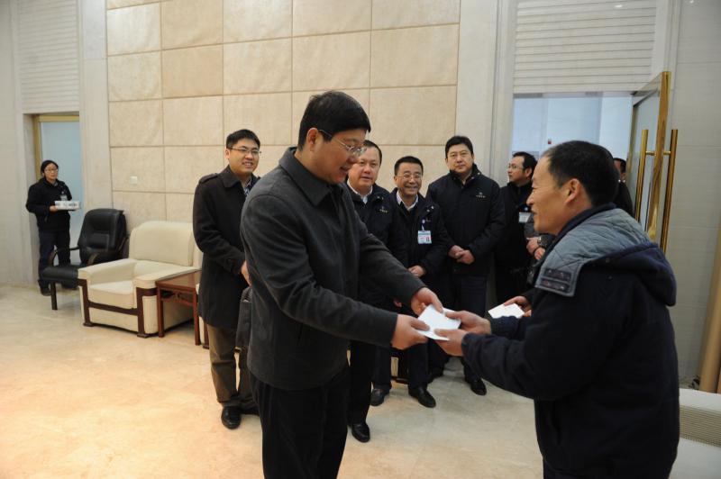 1月26日,中国黄金集团公司副总经理王晋定一行3人来bv1946伟德调研,同时对公司困难职工进行了慰问,并送上慰问金和新年祝福。梁中扬等公司领导陪同调研。