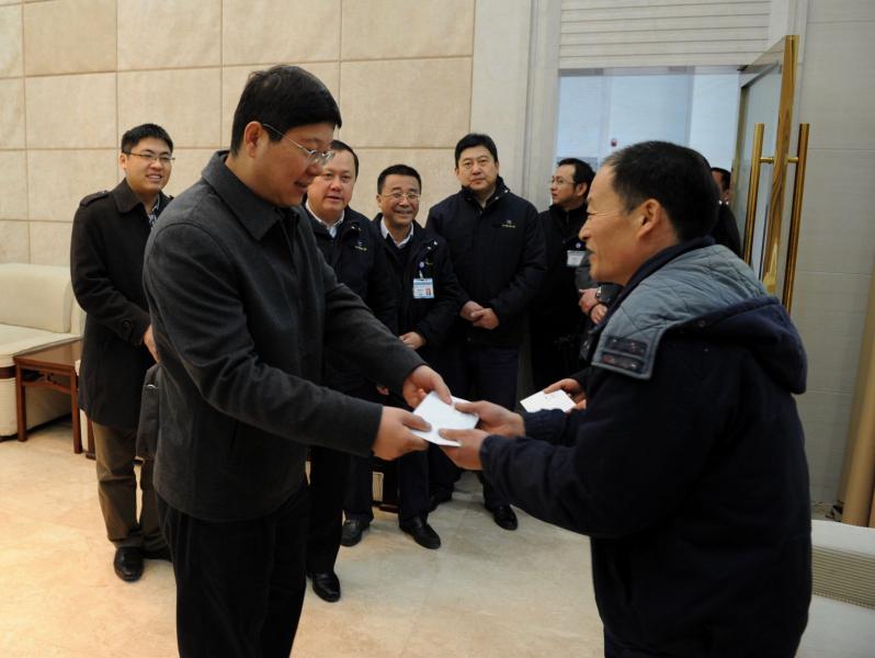 1月26日,集团公司副总经理王晋定一行来公司慰问王家乐等2名困难员工,亲手将慰问金送到他们手上,并向他们致以亲切问候,询问他们的身体和生活情况,让困难员工感受到集团公司这个大家庭的关爱。