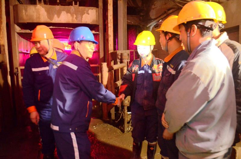 公司常务副总经理王友元(左二)在井下慰问坚守岗位员工。