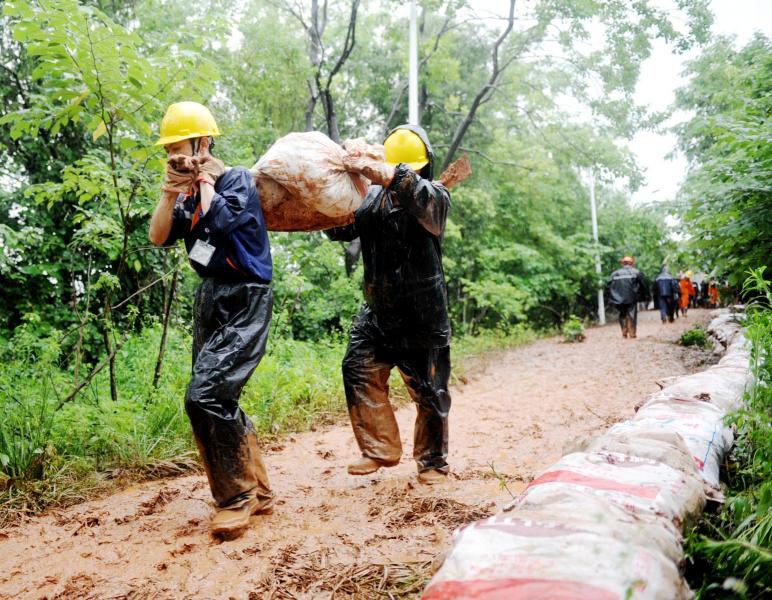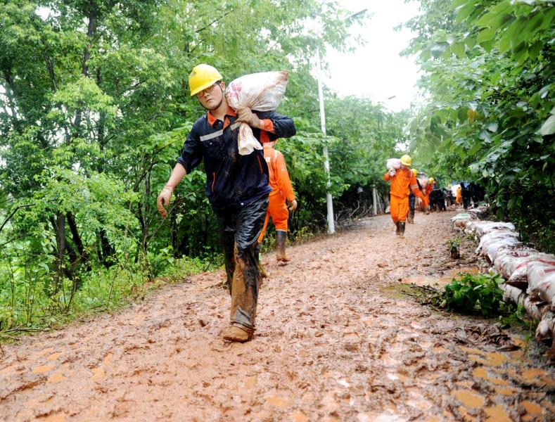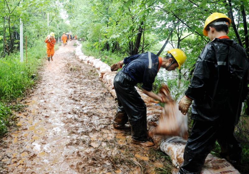 由于持续下雨,bv1946伟德救援队员们迈着艰难的步伐在泥泞中扛着一袋袋七八十斤重的黄泥,一步一步地沿着千米河堤码成了一条长长的“白龙”。武保部部长柯元胜左右手各提一袋黄泥,三步当两步不停地朝前走;采矿车间副主任石正宇一口气铲泥20袋,雨水沿着帽檐流到了鼻尖;采矿车间安全组组长胡永杰专找大袋黄泥扛;共产党员李德过累得腰直不起来,但是他仍在坚持……第一车黄泥装完了、第二车黄泥分完了、第三车黄泥搬光了……雨水和汗水混合在一起,使救援队员们的眼睛睁不开。尽管大家累得筋疲力尽,身体严重透支,但是他们不肯停歇下来,因为他们心中有一个目标,那就是要争分夺秒将这千米之堤的第一层防线、底线筑牢。