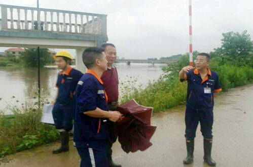 图4:公司领导现场带班轮值,巡查外湖水位和垦区汛情