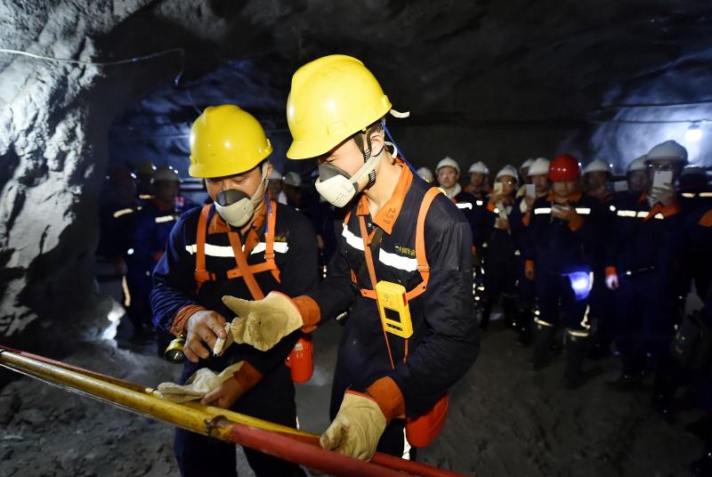 8月18日,学名们前往bv1946伟德,现场观摩了伤员包扎和心肺复苏急救处置示范演示操作、矿山应急救援装备、器材功能介绍与操作使用等项目演示;深入-533米、-546米水平采掘作业现场参观该公司安全标准化管理和安全确认制操作。通过参观学习,学员们感触颇深。河北石湖安全职业健康部温阔业说:“bv1946伟德公司安全确认程序规范,作业人员素质及安全意识高。”“作业前、作业中、作业后安全管理做得非常到位,包括检查、排险、确认等一套程序十分规范,值得我们学习。”陕西太白公司安全员杨涛说。