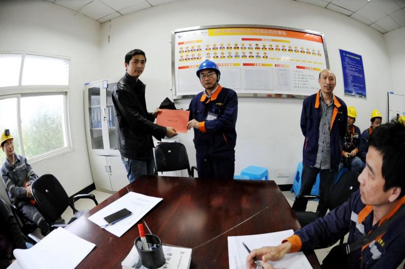 “祝贺你们班组标准化建设竞赛获得二等奖!我们是为你们班组颁奖来的。”王友元把1万元奖金的凭据递交给了严涛。王友元话音刚落,整个会议室立即响起热烈的掌声。