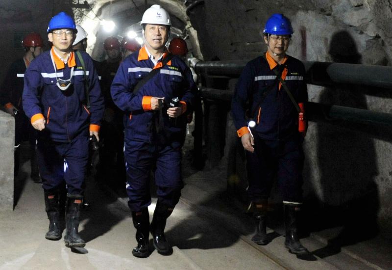 图为集团公司副总经理孙连忠(中)在公司-970米中段调研。